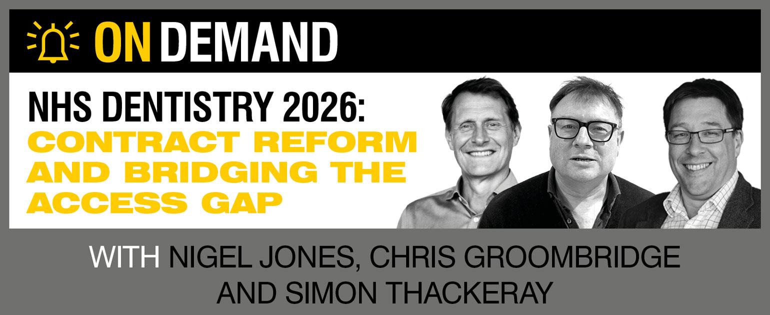Watch back this on-demand recording with Nigel Jones, Chris Groombridge and Simon Thackeray as they explore what the recently announced contractual changes could mean for both patients and NHS dentists and what shape the promised fundamental reform might take.