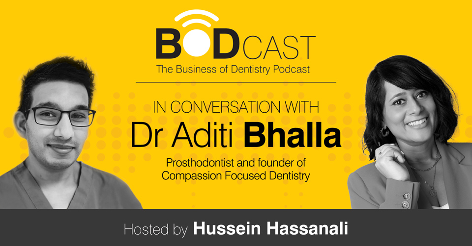 In this episode of The Business of Dentistry podcast, guest host, Hussein Hassanali, from Thorpe Dental Group speaks to Dr Aditi Bhalla, a specialist dentist, about Compassion Focused Dentistry.